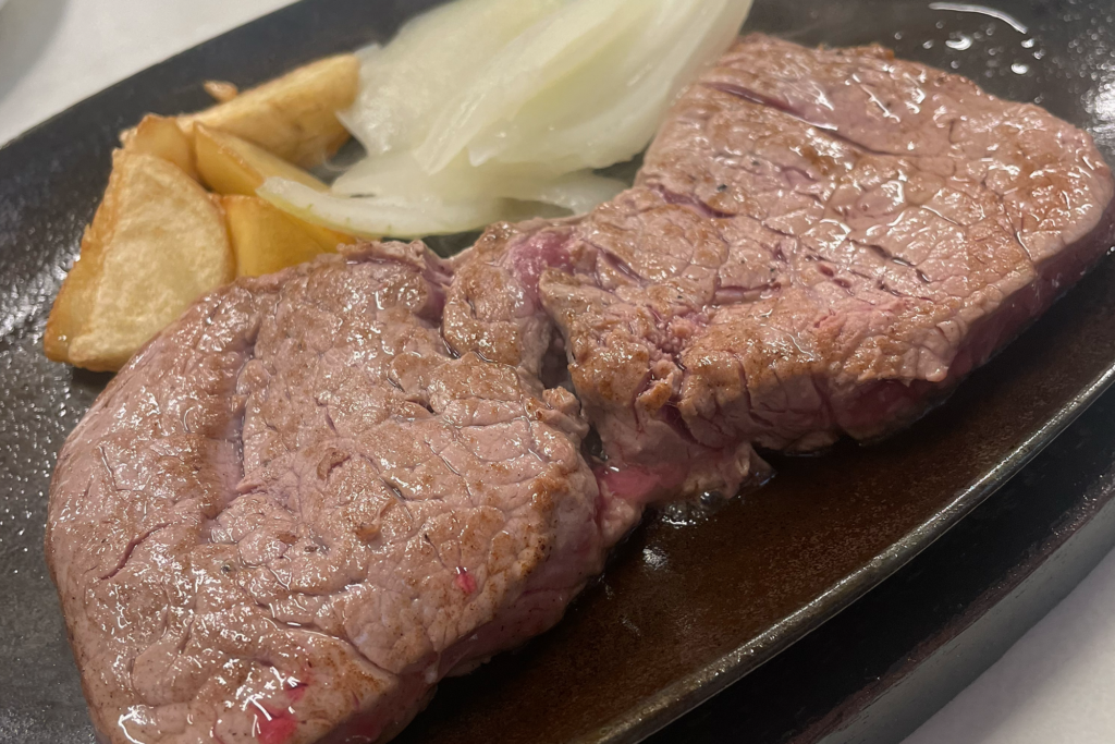 一番人気の「テンダーロインステーキ」はジューシーな赤身の牛ヒレ肉で、ボリューム満点のステーキで、色々な調味料をかけて楽しむことができます。個人的には、醤油と一緒に食べるステーキが最高です。また、セットで付いてくる(一部では「謎スープ」と呼ばれている)スープも絶品ですのでぜひ味わってください。